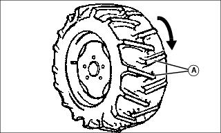 · Narrow or Wide Spacing - Move each wheel to opposite side of machine with traction bars (A) pointing forward.