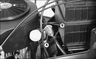 4. Remove plastic retainers (A) and air cleaner cover (B).
