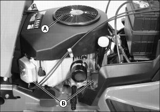 2. Clean air intake screen (A), cooling fins, and external surfaces (B), with rag, brush, vacuum or compressed air.
