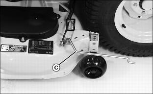 c CAUTION: Avoid injury! Make sure mower has been lowered as far as it will go.