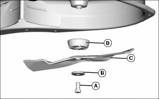 4. Loosen and remove bolt (A), washer (B), and blade (C).