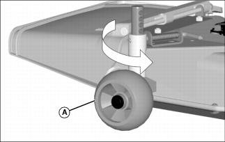 3. 54 Inch Mower Only - Make sure mower wheels (A) are rotated to allow deck to be rolled under machine.