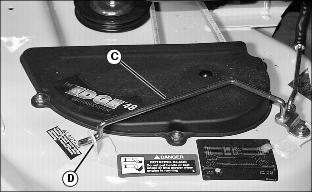 c CAUTION: Avoid injury! Belt tension rod is spring-assisted and under tension. Keep a secure grasp on rod at all times while releasing or applying drive belt tension.
