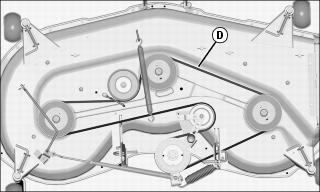 1. Make sure deflector cup (D) is seated properly between mower spindle and blade.
