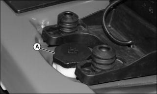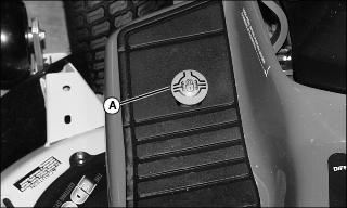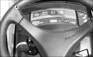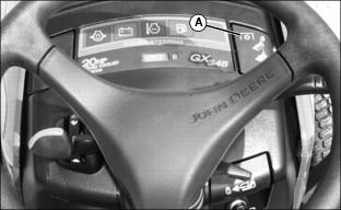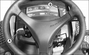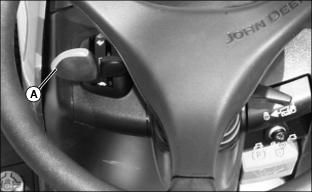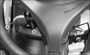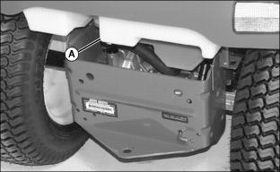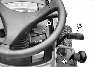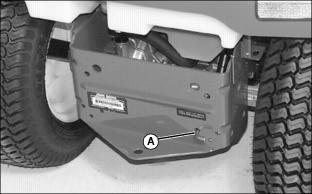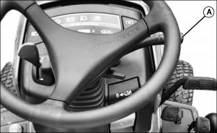 2. Push differential lock pedal (A) down to the foot rest. Lock will remain engaged as long as pedal is depressed.