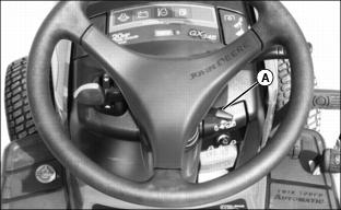 4. Turn mower height control knob (A) to desired cutting height. Mower will be at set cutting height when lowered.