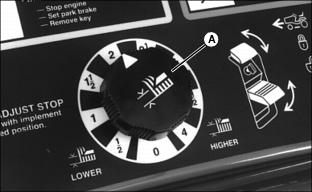 NOTE: Do not use hydraulic control lever to adjust cutting height of mower deck. Use height control dial for cut height adjustment.