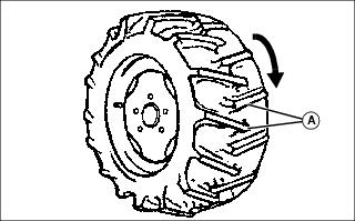 · Narrow or Wide Spacing - Move each wheel to opposite side of machine with traction bars (A) pointing forward.
