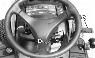 c CAUTION: Avoid injury! Do not attempt to adjust the steering wheel while the machine is moving. The operator can lose control of the machine.