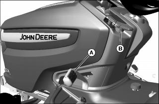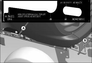 2. Turn adjusting bolt (B) at front of machine frame to adjust lift assist spring: