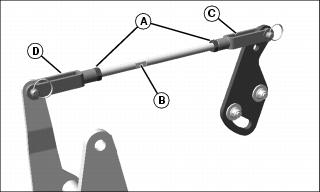 • To decrease tilling depth, turn lift rod (B) into clevis (C) and (D).