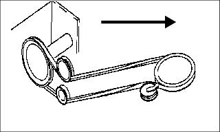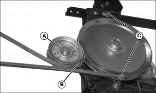 • If rod end is in position (B), against the vertical frame rail (C), the belt is too tight and must be loosened.
