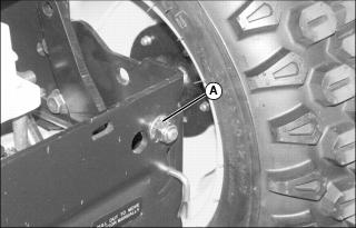 1. Install M12x25 bolt to the right rear of tractor frame and secure with M12 nut (A).