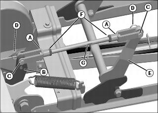 NOTE: Jam nuts (F) may need to be loosened and rod (G) adjusted to install yokes (A).