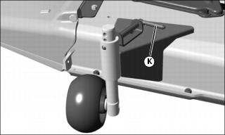 · Pull pin (K) outward and move wheel to proper hole position. Release pin to lock wheel in position.