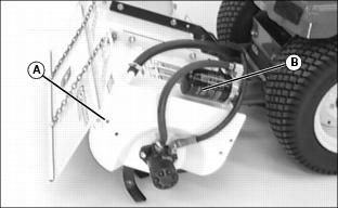 2. Stop tractor and lower tiller until reservoir cover is level.