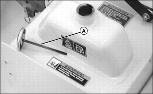4. Remove dipstick (A). Wipe off with a clean cloth.