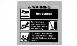 The machine safety labels shown in this section are placed in important areas on your machine to draw attention to potential safety hazards.