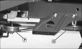 15. Move idler sheave (P) to the right and install belt onto PTO sheave (Q).