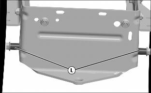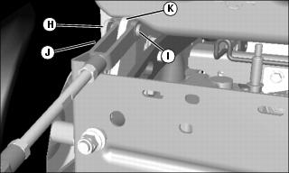 8. Remove locking ring (H) from drilled pin (I). Remove lift rod yoke (J) from tractor lift bracket (K). Install the hardware to the yoke for storage.
