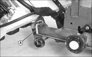 2. Rotate tiller forward, do not lock into position with transport lock lever (A). Set depth stop to zero.