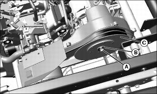 5. Route belt over drive pulley (B) to remove.