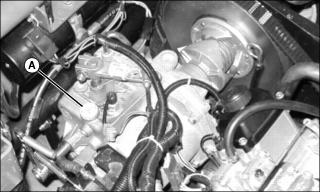 3. Remove dipstick (A) located on the top of the transaxle housing. Wipe dipstick clean.