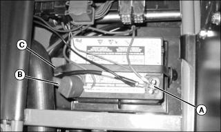 IMPORTANT: Avoid damage! Electric charge from booster battery can damage machine components. Do not install negative booster cable to machine frame. Install only to the engine block.