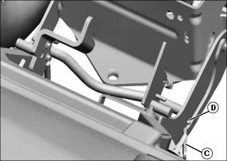 6. Lift latch levers (C) up and over roll pins (D) on both sides.