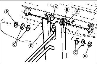 4. Install two spring washers (C) and M8 lock nut (D) on each hex bolt and tighten.