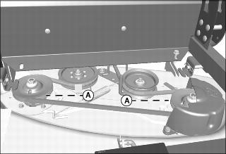 • Lubricate two mower deck spindle grease fittings (A) with two pumps of grease at specified interval.