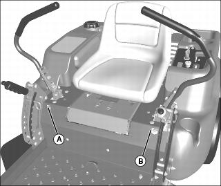 4. Locate transaxle oil reservoir (A) at rear of machine. Reservoir is marked FULL (B).