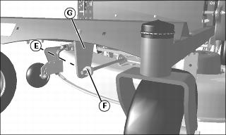 7. Remove locking clip (E) and, remove stud end (F) from front draft bracket (G).