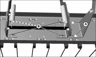 10. Tighten carriage bolts (B) on frame mounting brackets.