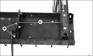 9. Adjust thatcher by sliding frame mounting brackets left or right in adjustment slots. Keep distance (C) between gauge wheel support and mounting bracket equal on both sides of thatcher.