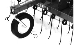 Lower tines 6.4 mm (1/4 in.) at a time until, when operating, tines stay in their rearward working position, scratching ground and producing a good seedbed for seeds to germinate.