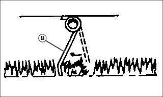 • If tines remain in thatching position (B) where they work but do not flip thatch up, raise main frame.