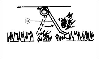 • Set thatcher tines in released position (C) to loosen thatch for removal from lawn.