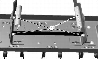 4. Loosen mounting frame nuts (D) securing thatcher to mounting frame.