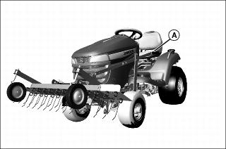 Retention safety rods (A) prevent loose or broken tines from falling into mower path. Do not alter or remove any part of tine retention safety rods. If retention safety rods break or become removed from thatcher, replace rods with parts from dealer before continuing thatcher operation.