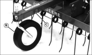 3. Align each gauge wheel (B) directly under wheel support (C).