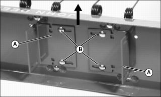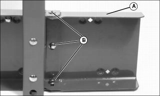 3. Install four 5/16x1 in. carriage bolts (B) and locknuts. Do not tighten completely.