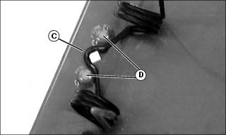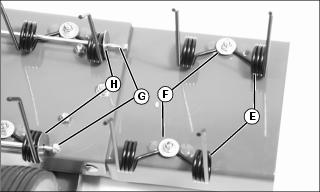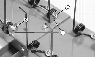 5. Install two-hole washers (I) onto main retention rods. Fasten with lock nuts (G), previously removed.