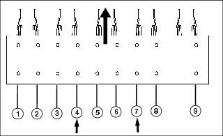 1. Locate frame mounting bracket mounting holes 4 and 7.