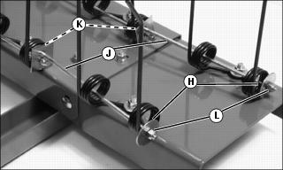 7. Install washers (H), removed previously, onto other end of short retention rods. secure with 1/4 in. locknuts (L).