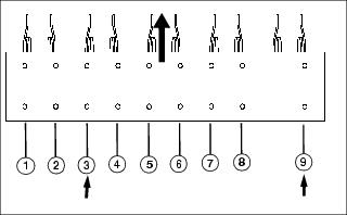 1. Locate wheel support bracket mounting holes 1 and 9.