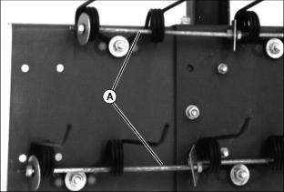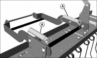 3. Unhook lift spring (A) from thatcher, then from tractor frame. Repeat at opposite side.