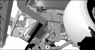 7. Push rod (J) to one side and remove from tractor frame and attaching thatcher brackets.