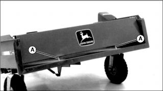1. Make sure dump latch lever (A) is pushed toward the rear so cart box is latched to drawbar.
