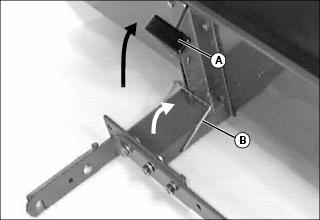 7. Pull dump latch lever (B) toward the front to unlatch and pull lever upward to lift load for dumping.